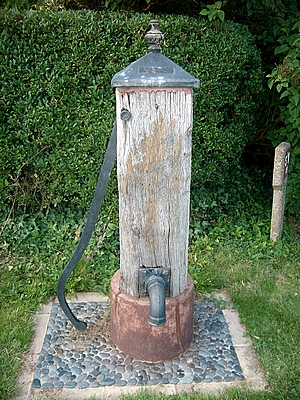 The tiny scullery had stone floors with a coal or wood fired boiler in the corner.  Water was pumped into the cottage by means of a hand operated pump mounted beside a shallow stone sink.  This was quite a convenience compared to many families who had to carry buckets to and from the village pump.